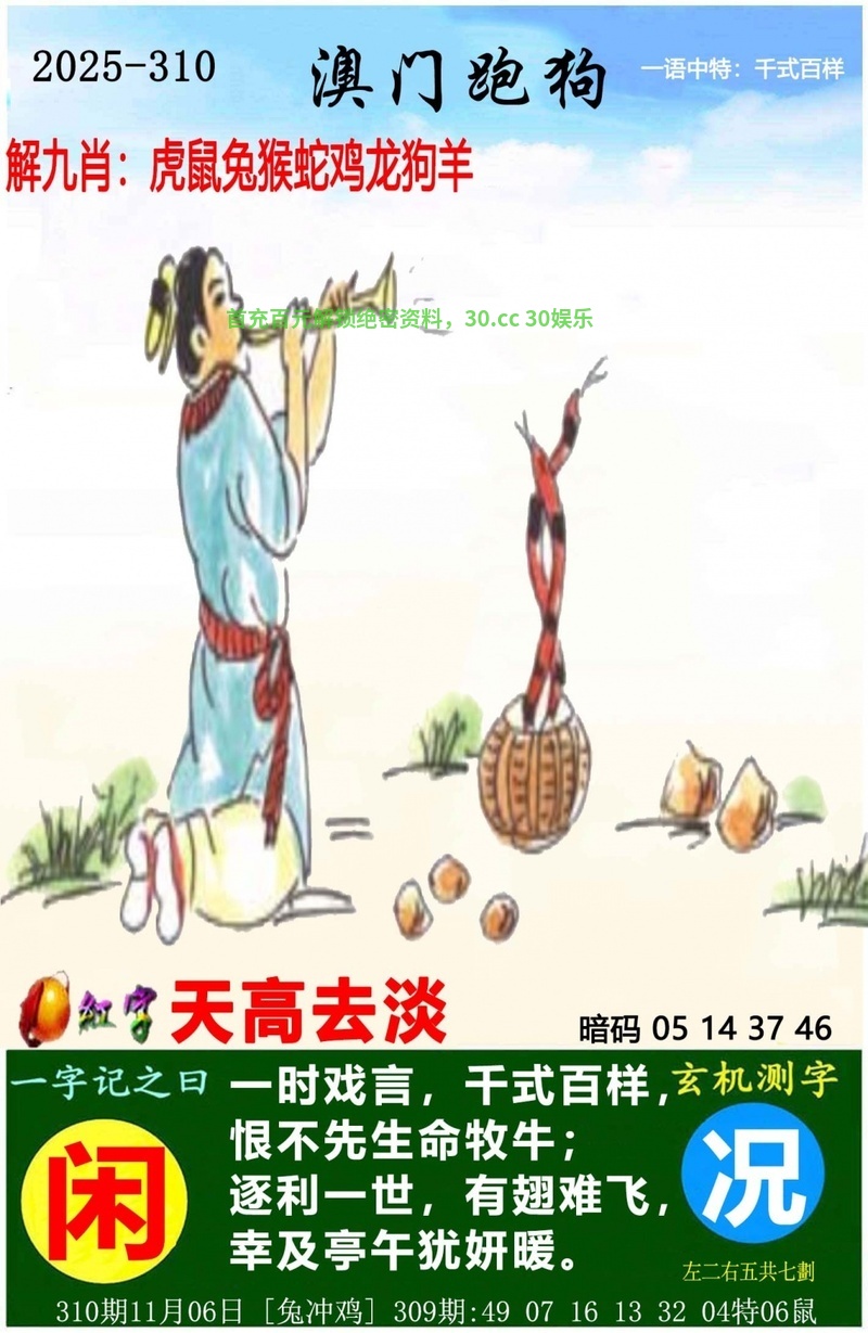 | 311期三肖 | 狗蛇鸡 | 开:蛇37 |