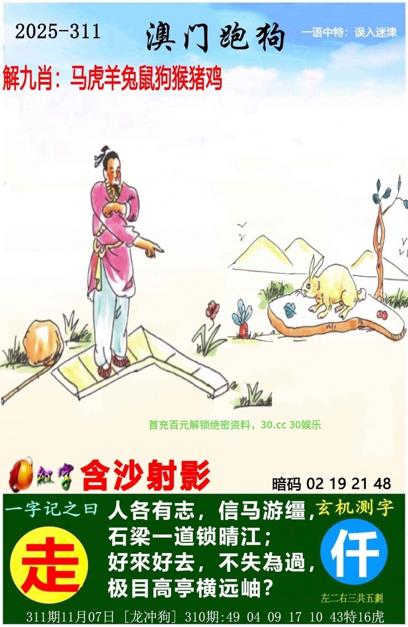 | 303期九肖✍龙羊马牛虎猴狗猪兔✍开:兔15准 |
